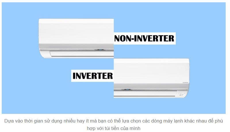 Dùng thường xuyên (cả ngày hoặc nhiều giờ): nên chọn máy lạnh Inverter, tiết kiệm 30–50% điện năng.
