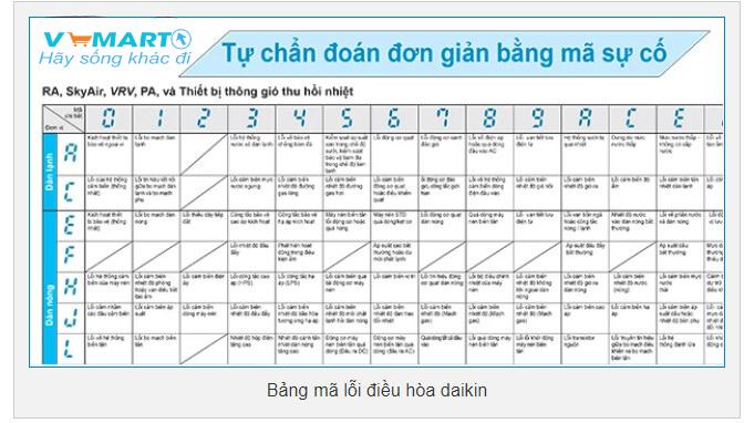 Bảng mã lỗi điều hòa Daikin, biện pháp kiểm tra và xử lý