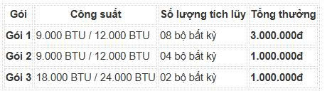 Mỗi gói thưởng được tính theo mức thưởng hiện tại tại thời điểm tham gia.