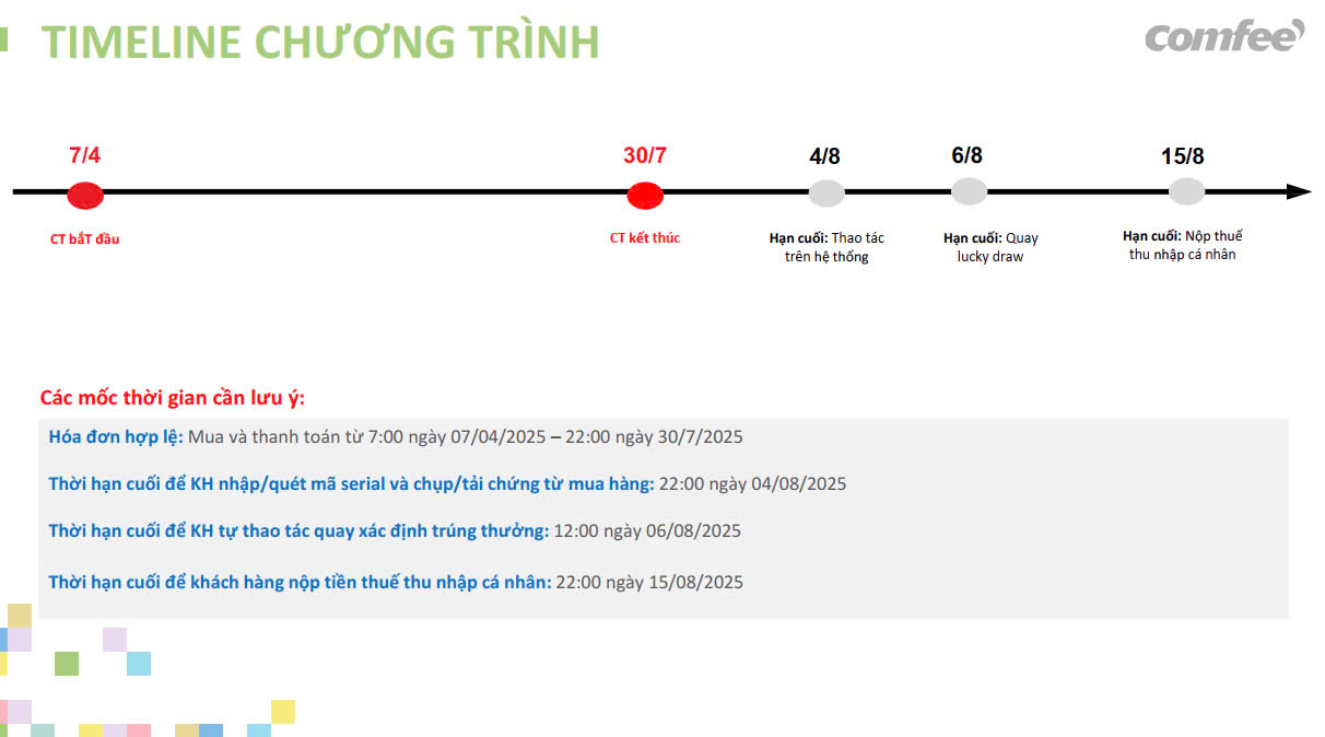 | 07/04 – 30/07/2025 | Thời gian mua hàng hợp lệ |