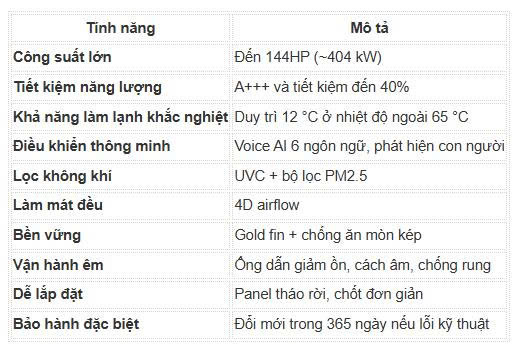 🔹 Tính năng nổi bật của điều hòa thương mại AUX