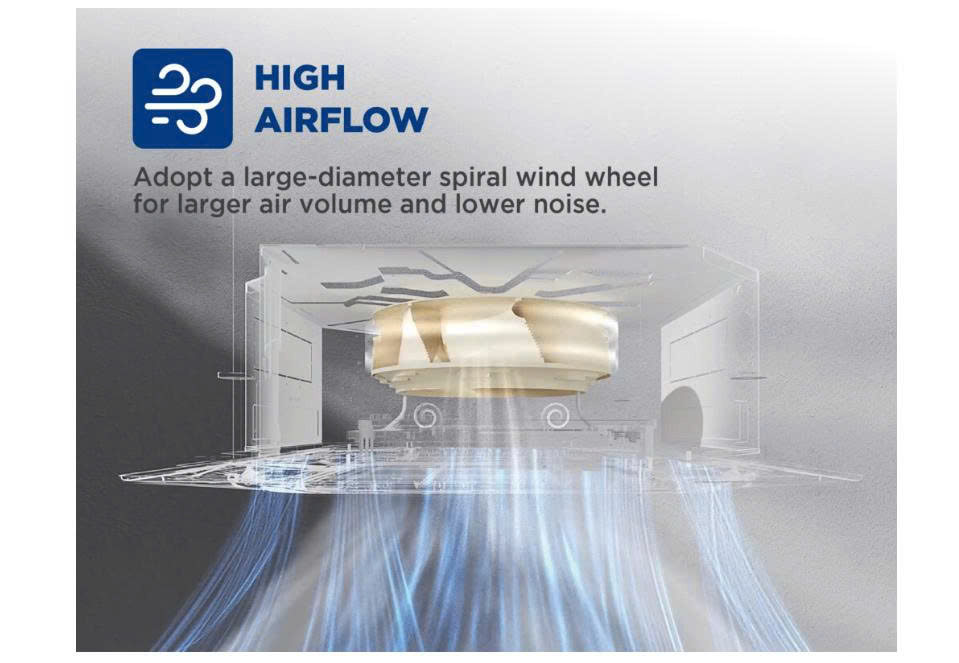 Máy lạnh âm trần AUX được trang bị hệ thống thổi gió 360° đa hướng, giúp hơi lạnh lan tỏa đồng đều, loại bỏ tình trạng “nóng lạnh cục bộ”. Dù bạn ngồi ở bất kỳ vị trí nào trong phòng, vẫn có thể tận hưởng không khí mát dễ chịu.