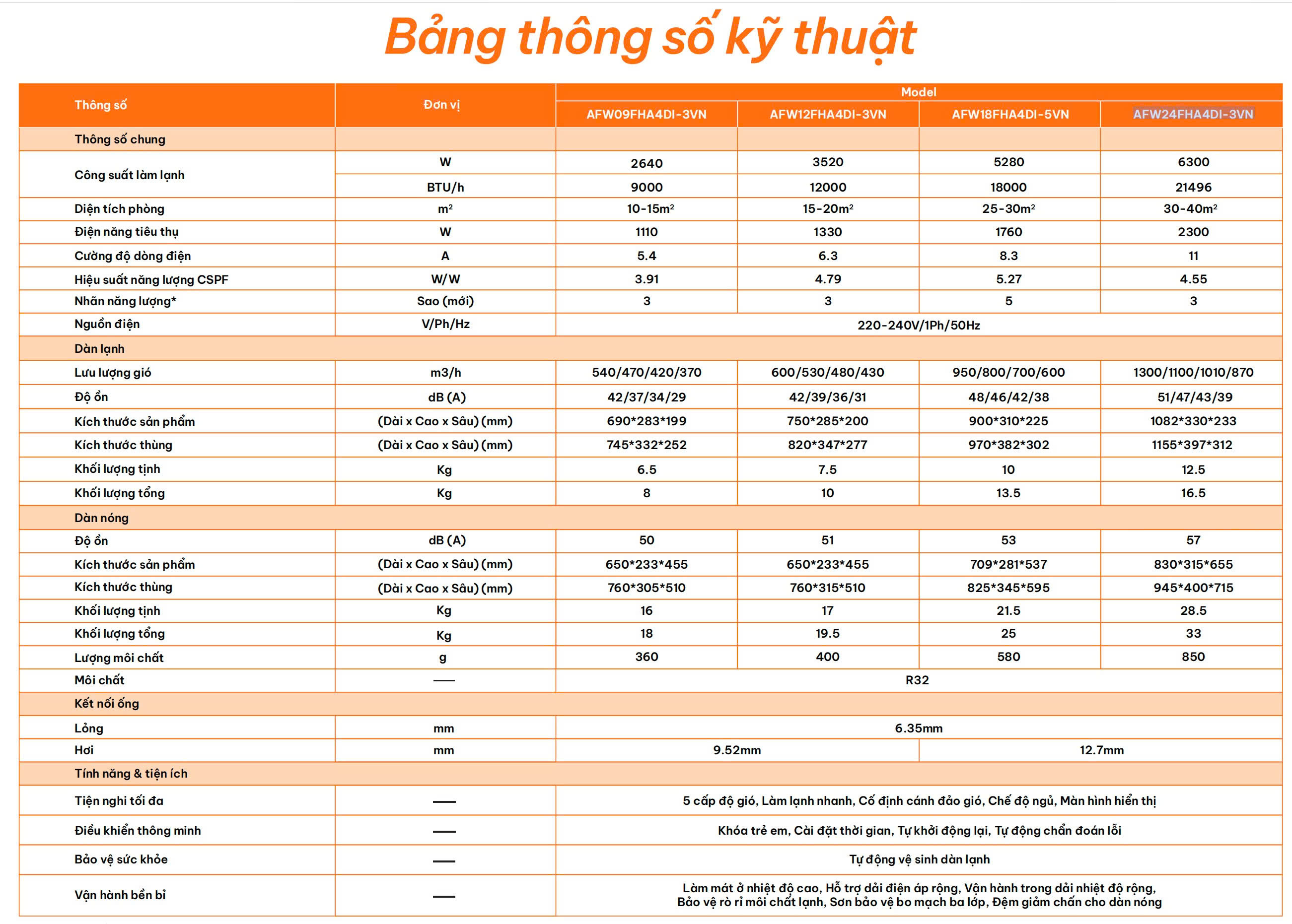 - Gas R32 → làm lạnh nhanh, thân thiện môi trường