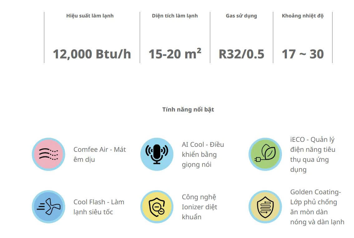 Công suất làm lạnh: 12.000 BTU/h
