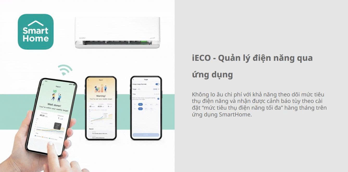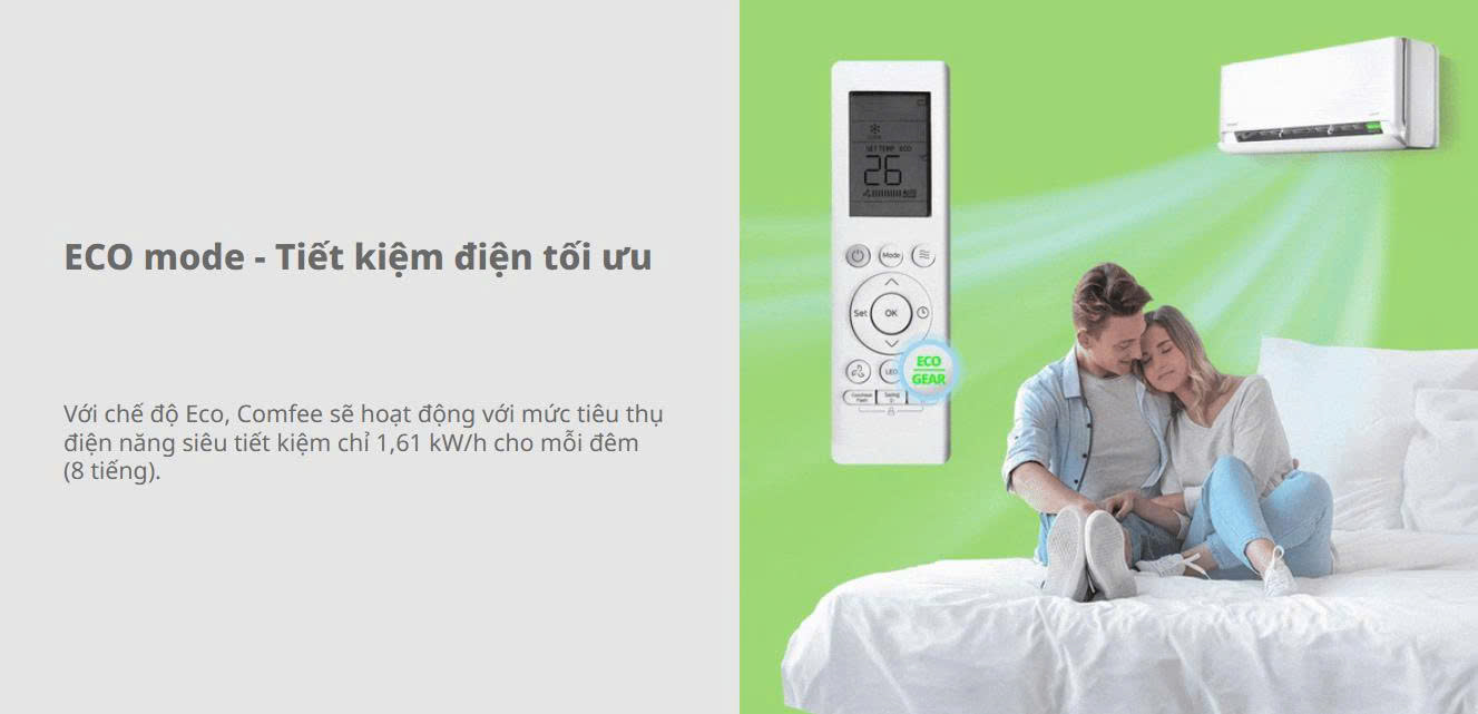 Chế độ ECO giúp máy vận hành siêu tiết kiệm, chỉ 1,61 kW/h cho 8 tiếng sử dụng ban đêm, phù hợp cho gia đình sử dụng thường xuyên.
