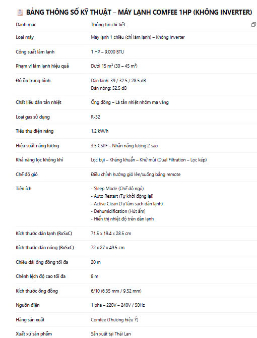 Với thiết kế hiện đại, công nghệ tiên tiến và khả năng làm mát hiệu quả, Máy Lạnh Comfee 1 HP CFS-10FWFF-V là một lựa chọn tuyệt vời để trang bị cho không gian sống và làm việc của bạn