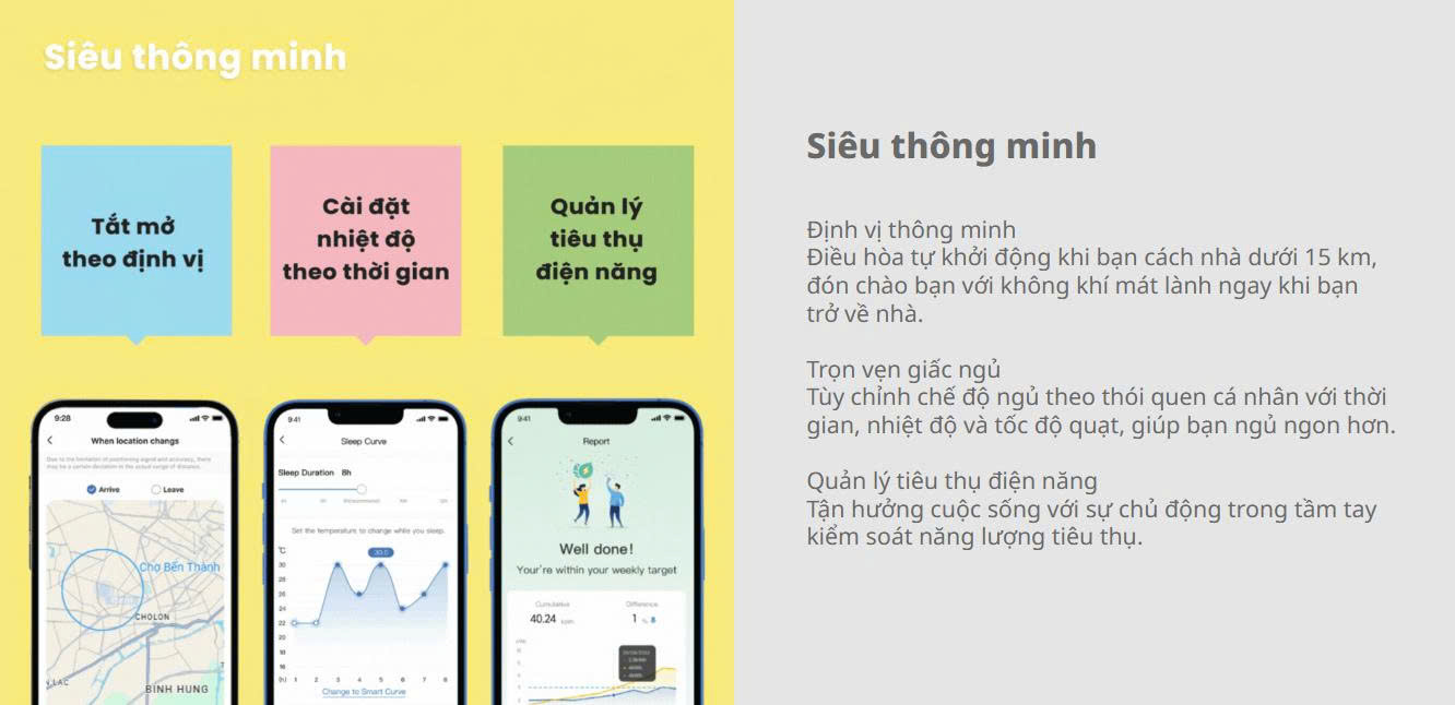 Có chức năng Follow Me, chế độ ngủ đêm, làm lạnh nhanh