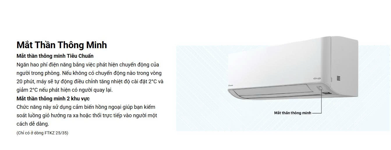 ✔ Bản FTKZ25/35 có mắt thần 2 vùng, điều khiển hướng gió tránh hoặc thổi trực tiếp theo nhu cầu