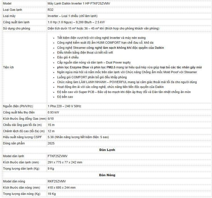 – Phạm vi hoạt động hiệu quả: chiếc điều hòa Daikin này hoạt động với công suất làm mát 1HP ~ 9000BTU, là giải pháp làm mát lý tưởng cho phòng có diện tích dưới 15m².