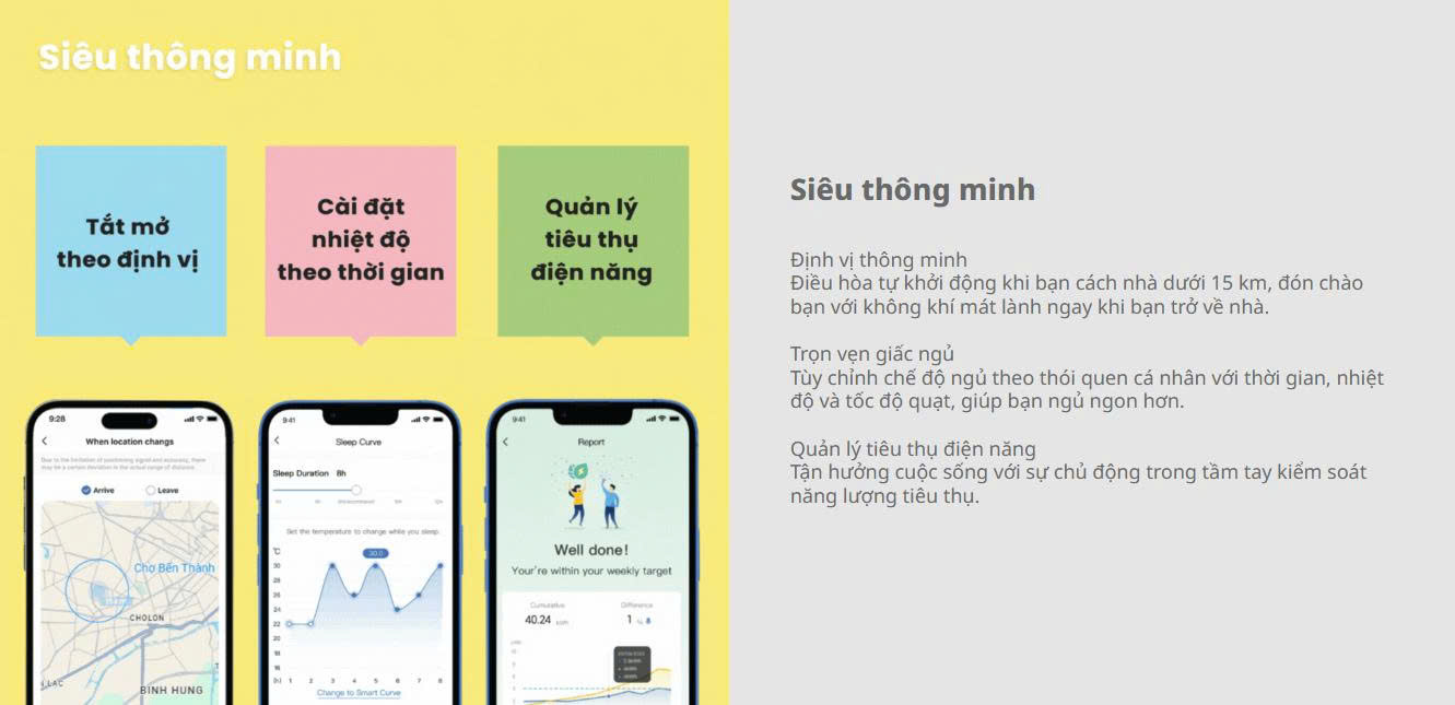 Tự tùy chỉnh theo thói quen ngủ: nhiệt độ – thời gian – tốc độ quạt, giúp ngủ sâu và thoải mái hơn.