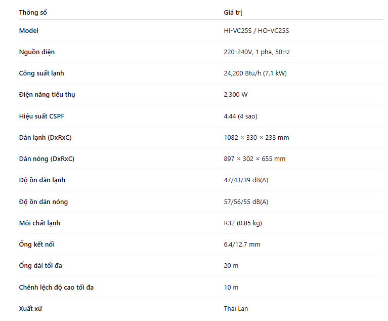 • Dải công suất : 2.5 HP ( 24.200  BTU)