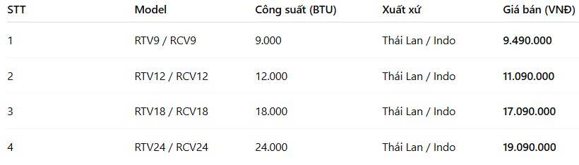Bảng giá máy lạnh Reetech Inverter (Gas R32 – 1 chiều)