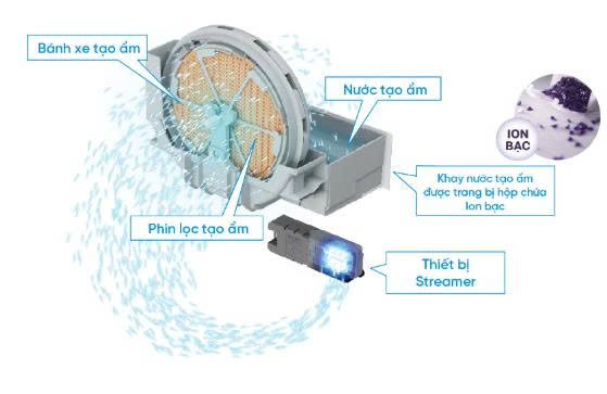 Khay nước được chiếu xạ bằng Streamer, loại bỏ vi khuẩn và nấm mốc trước khi hơi ẩm phát tán ra ngoài.