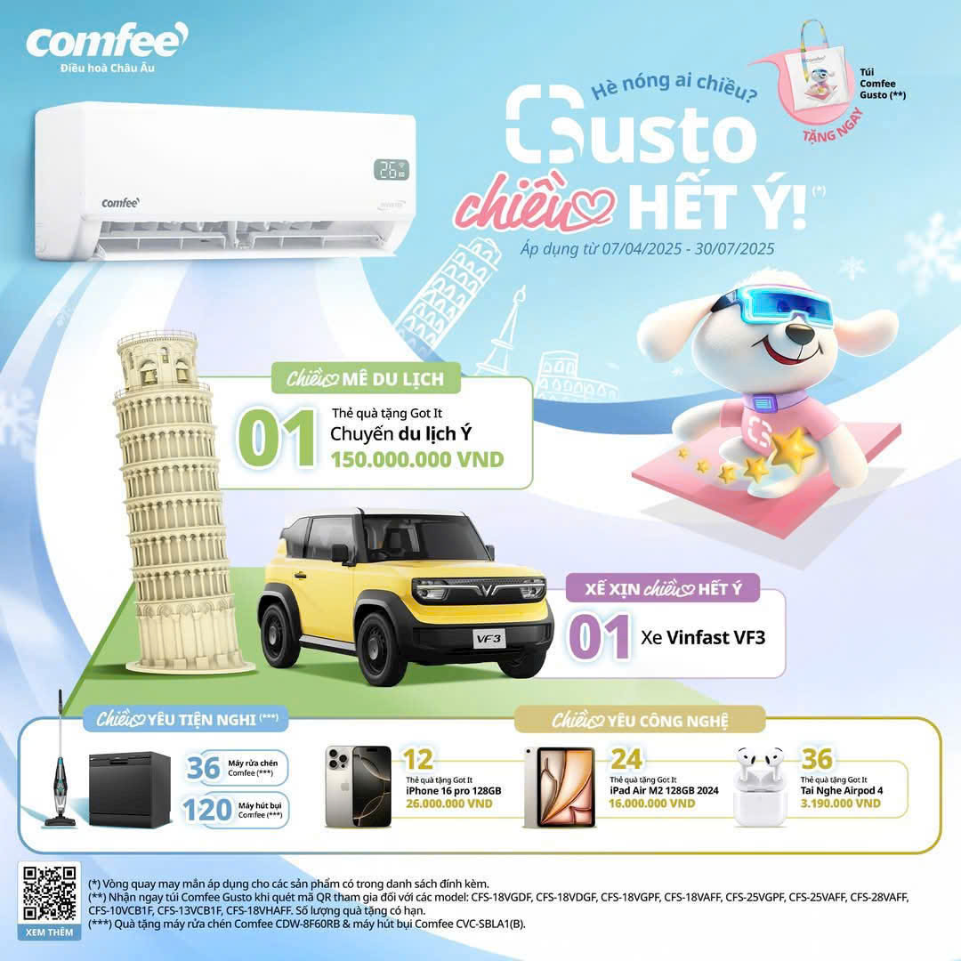 🔥 Mùa hè tại TP.HCM đã chính thức bắt đầu với những ngày nắng nóng đỉnh điểm. Đừng để không khí oi bức làm bạn mất đi sự thoải mái mỗi ngày. Giải pháp cho mùa nóng năm nay chính là máy lạnh Comfee Gusto – công nghệ làm lạnh hiện đại đến từ Châu Âu, kết hợp chương trình khuyến mãi cực khủng từ ngày 07/04/2025 đến 30/07/2025!