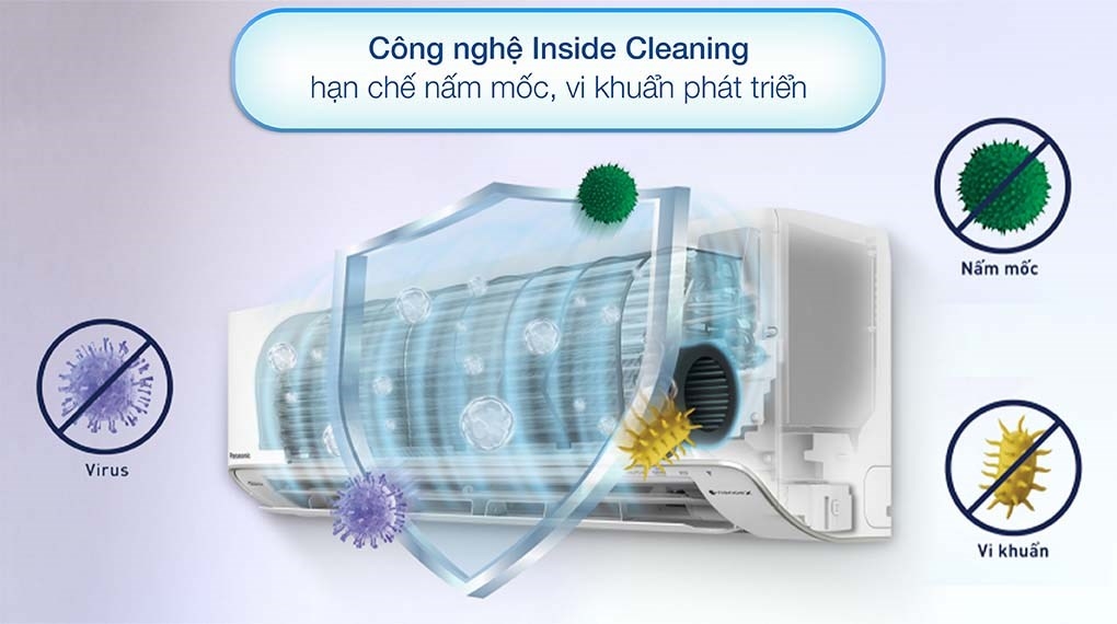 Chức năng tự động vệ sinh bên trong dàn lạnh giúp loại bỏ độ ẩm bên trong dàn lạnh, đồng thời giải phóng các hạt nanoe™ X để ức chế sự phát triển của nấm mốc và các chất ô nhiễm ngay bên trong máy - có tác dụng ức chế nấm mốc, vi khuẩn và vi rút trên dàn trao đổi nhiệt, các cửa gió và lưới lọc.