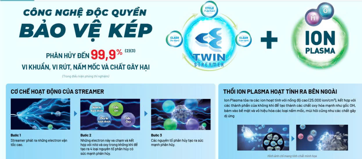 Diệt khuẩn, virus, nấm mốc – nhờ công nghệ Streamer + Ion Plasma độc quyền của Daikin.