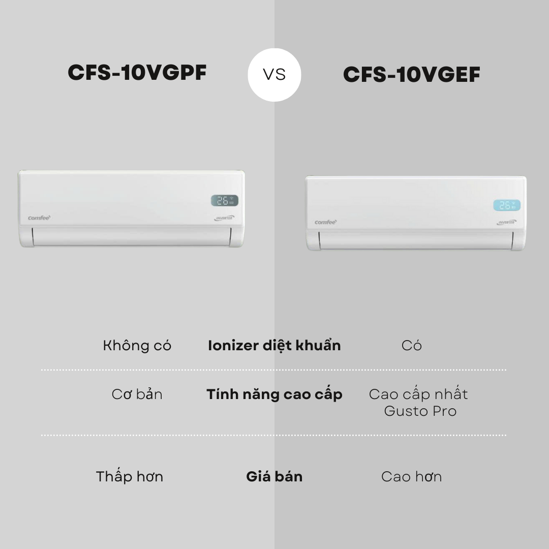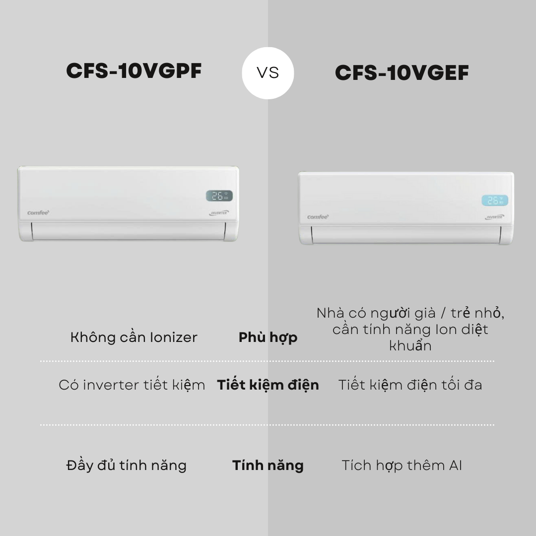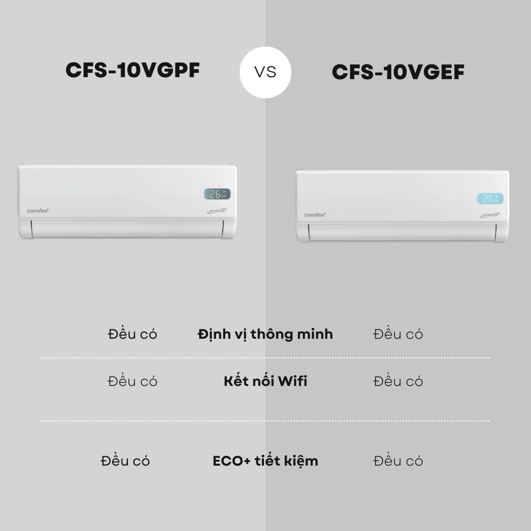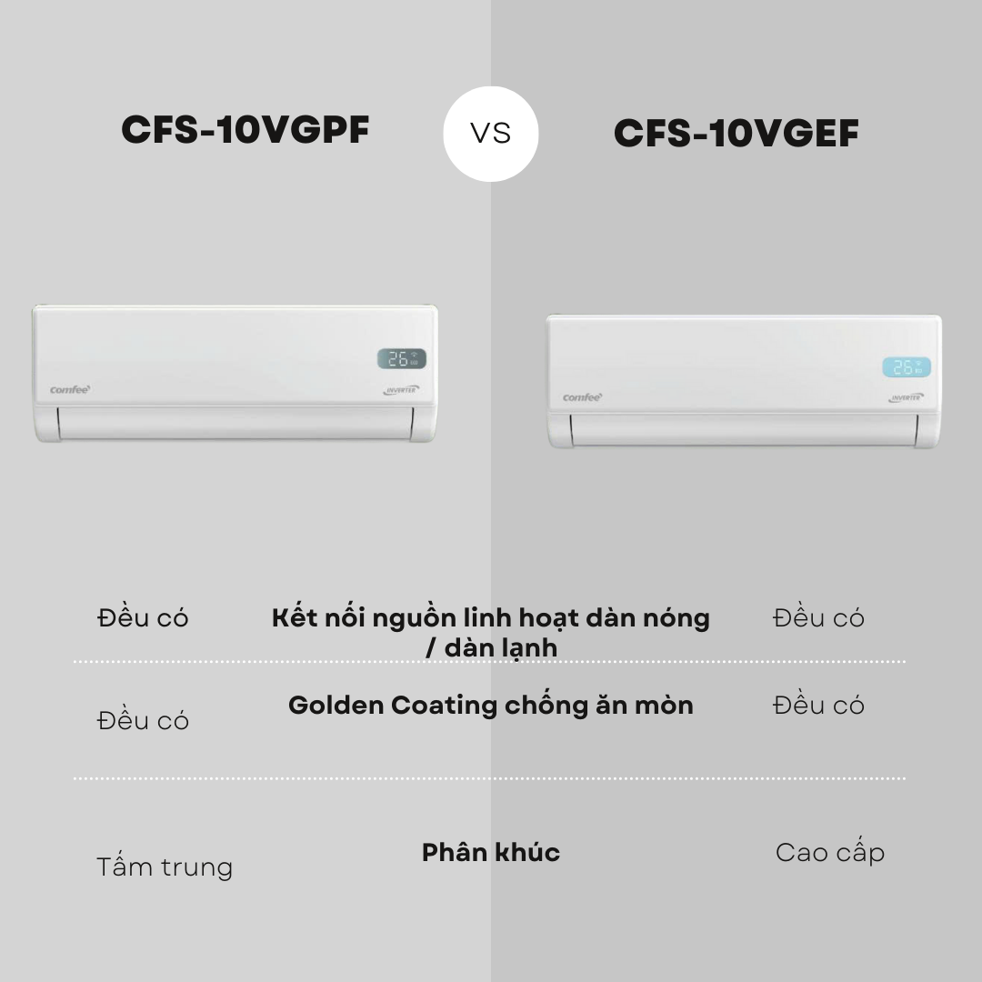 Nếu bạn đang phân vân giữa Comfee CFS-10VGPF và Comfee CFS-10VGEF, bài so sánh ngắn gọn dưới đây sẽ giúp bạn chọn đúng chiếc máy lạnh phù hợp nhu cầu.