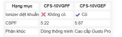 👉 CFS-10VGEF là bản cao cấp nhất Gusto Pro, thêm Ion âm + tiết kiệm điện tối đa.